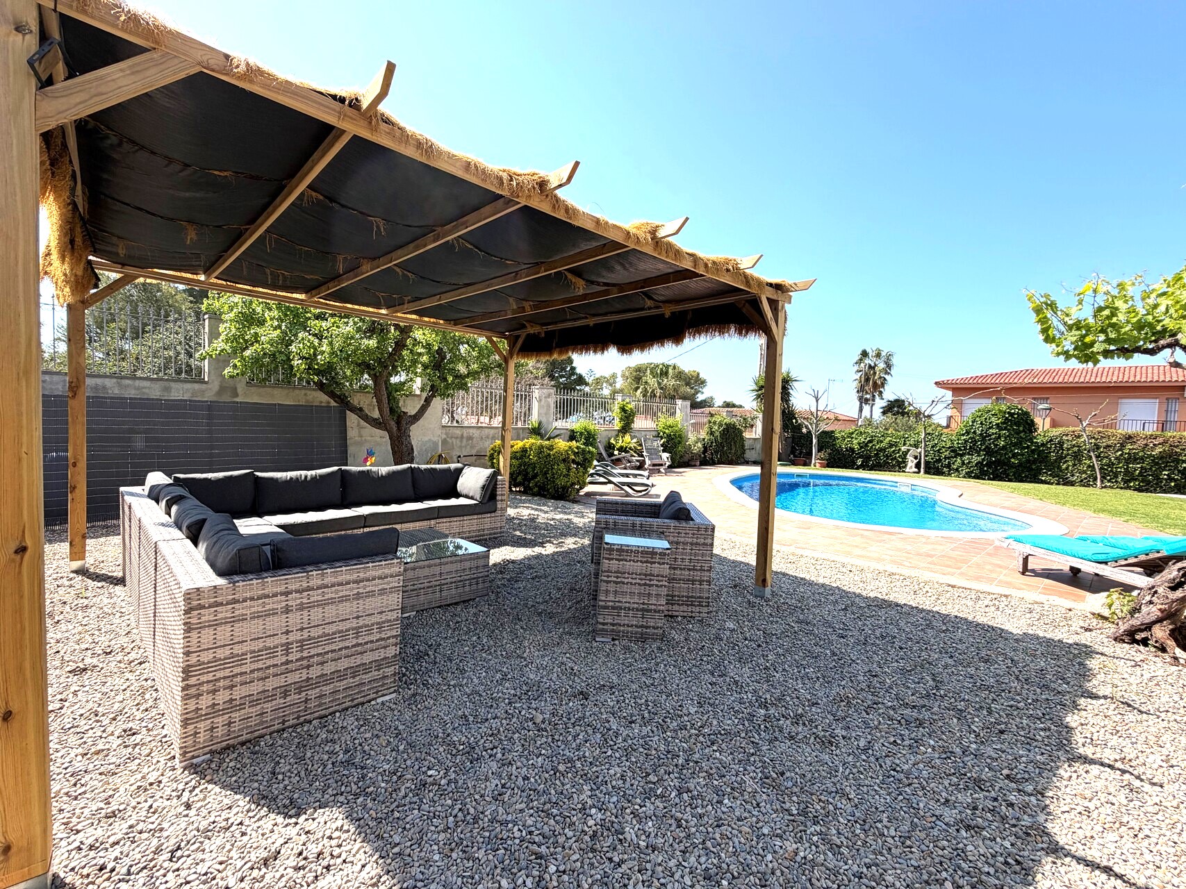 Beautiful villa 200 meters from the sea, located in Altafulla beach area, just in front of the Roman ruins. The house is distributed on the main floor, consisting of 3 double bedrooms, 2 bathrooms with shower, full kitchen, living room and large dining room. On the upper floor-attic, there is a suite with a private bathroom and a sun roof with sea views. On the semi-ground floor that accesses the garden with a swimming pool and large terrace, there is a modern kitchen with summer dining room and bathroom with shower. The house has barbecue area in the garden, garage, air conditioning and heater and a fan. WIFI. LINEN AND TOWELS INCLUDED IN THE PRICE.