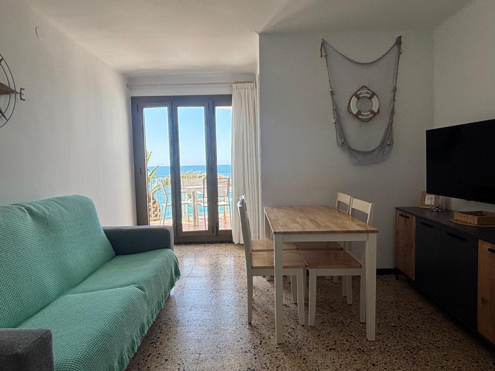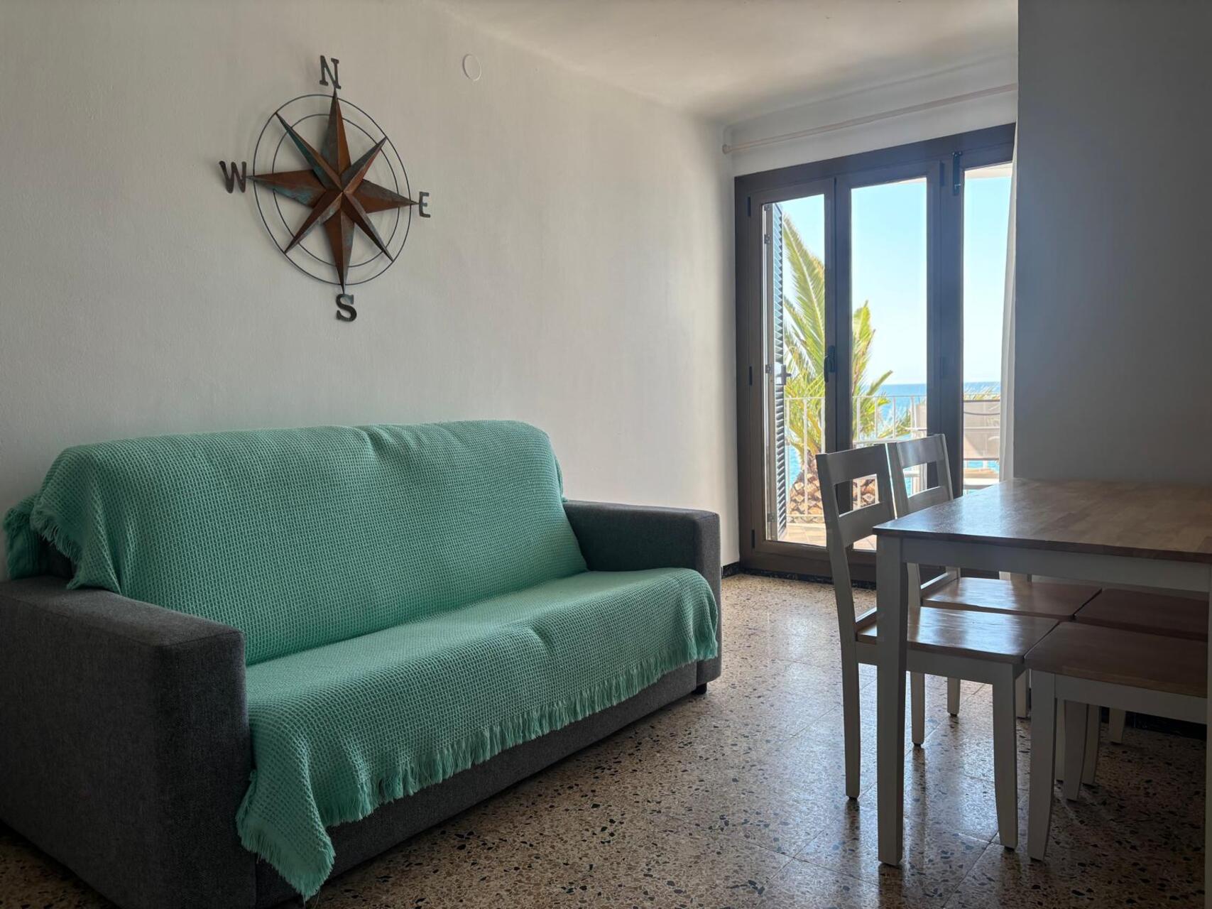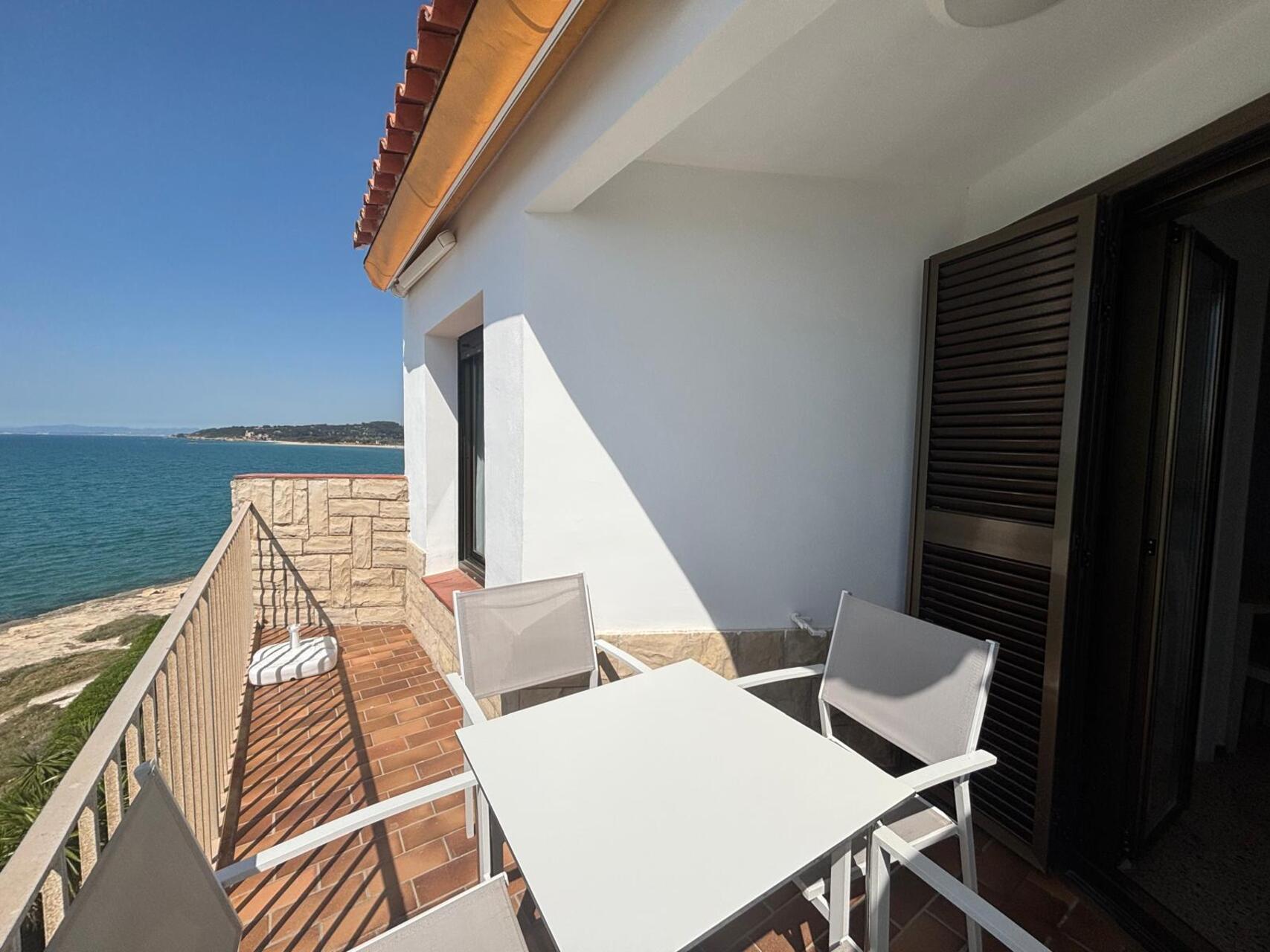 Typisches Apartment im maritimen Stil im ersten Stock. Unschlagbare Lage, auf den Felsen von El Fortí (Altafulla), Terrasse mit unschlagbarem Blick auf das Mittelmeer ideal zum Abschalten. Es gibt einen Ventilator.
